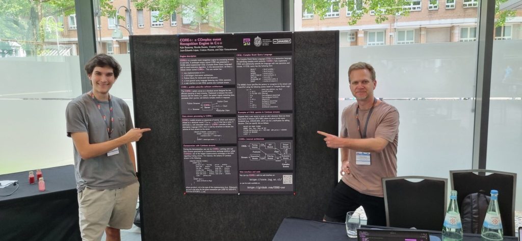 El equipo de Cristián Riveros presentó el demo paper “CORE+: A Complex Event Recognition Engine in C++”, una herramienta que muestra resultados prometedores para enfrentar uno de los retos más desafiantes de la computación actual: el reconocimiento de eventos complejos (CER, por sus siglas en inglés) en flujos continuos de datos en tiempo real.