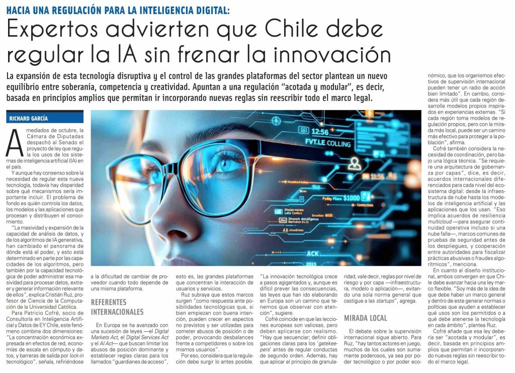 El pasado 29 de octubre, el medio El Mercurio publicó una nota titulada “Expertos advierten que Chile debe regular la IA sin frenar la innovación”, con el fin de abordar la realidad nacional con respecto a la regulación de la “Inteligencia Digital”.