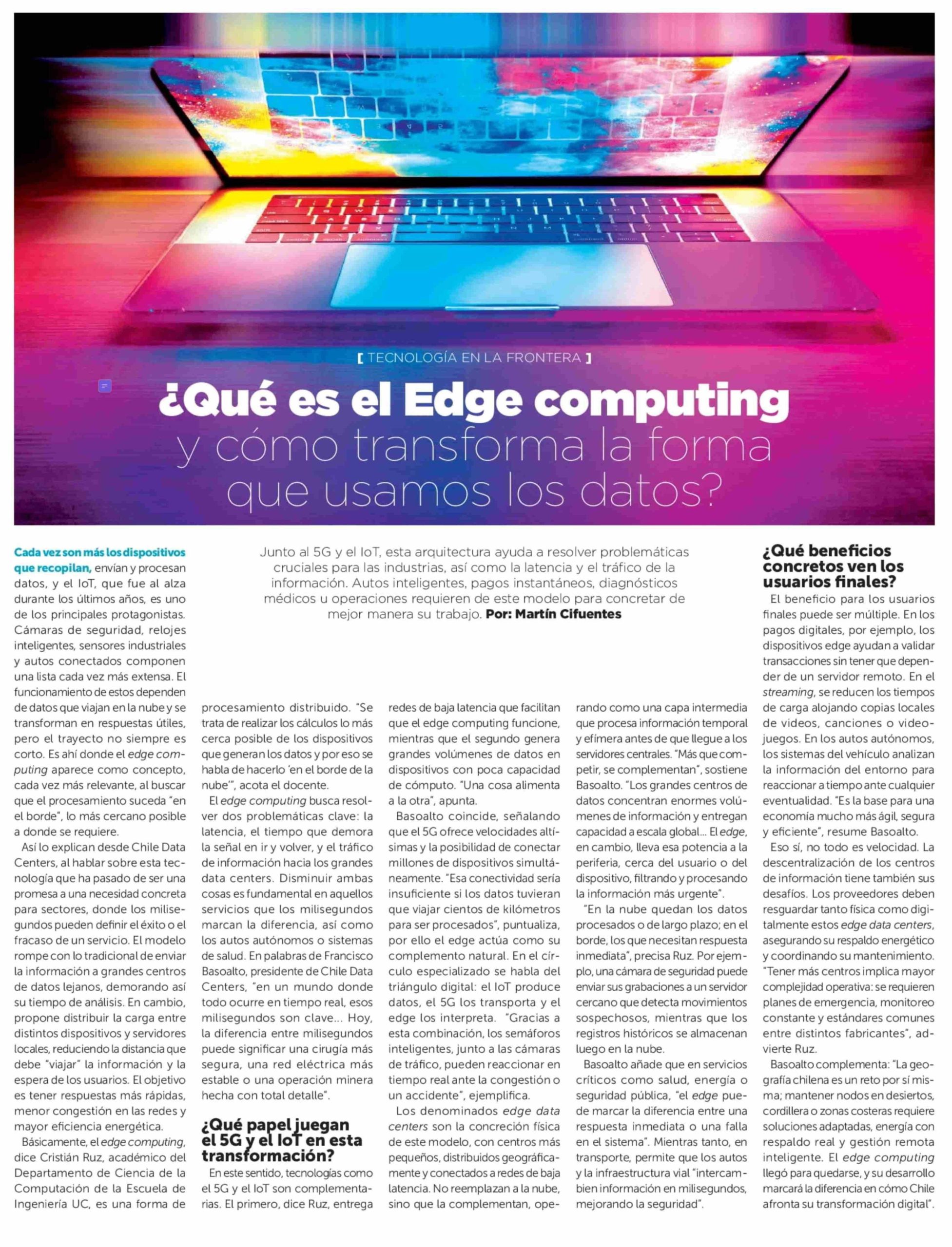 En la sección enmarcada por “Tecnología en la Frontera”, el medio El Mercurio quiso abordar la pregunta: “¿Qué es el Edge Computing y cómo transforma la forma que usamos los datos?”, esto en un contexto donde se habla que 5G y el loT, ha tomado fuerza en cuanto a automatizar procesos como por ejemplo, pagos instantáneos con el celular a operaciones más complejas como autos inteligentes y/o diagnósticos médicos. Bajo este paraguas, Cristián Ruz, académico del Departamento Ciencia de la Computación explica en detalle cómo se procesan los datos que viajan a la nube y son finalmente respuestas útiles y cuando no, aparece Edge Computing.